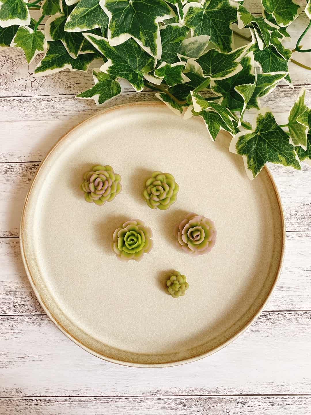 薔薇のような形の多肉植物の絞り方をレッスン用写真とは変えてみました♪